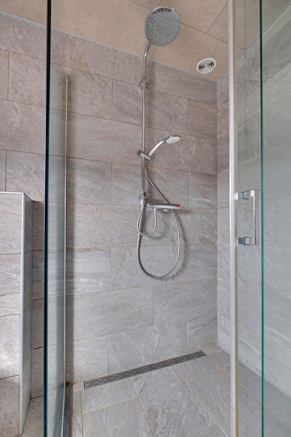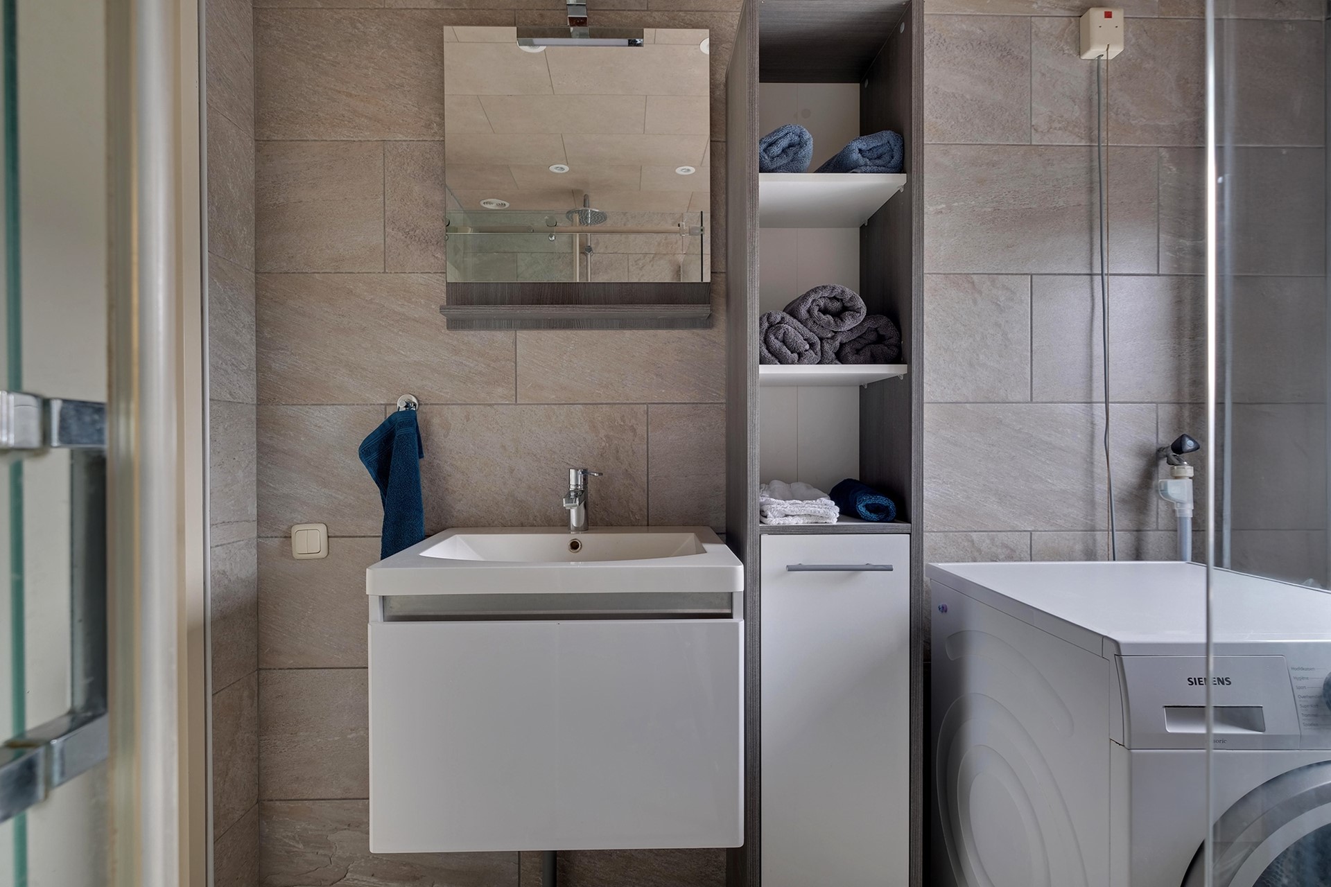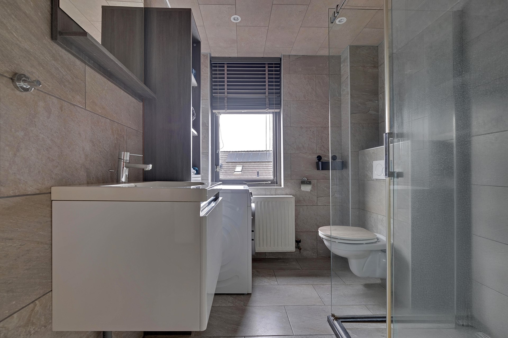 Via de overloop bereik je drie slaapkamers, die allemaal zijn uitgerust met rolluiken en een laminaatvloer. De badkamer is uitgerust met een inloopdouche, wastafelmeubel en wasmachineaansluiting.