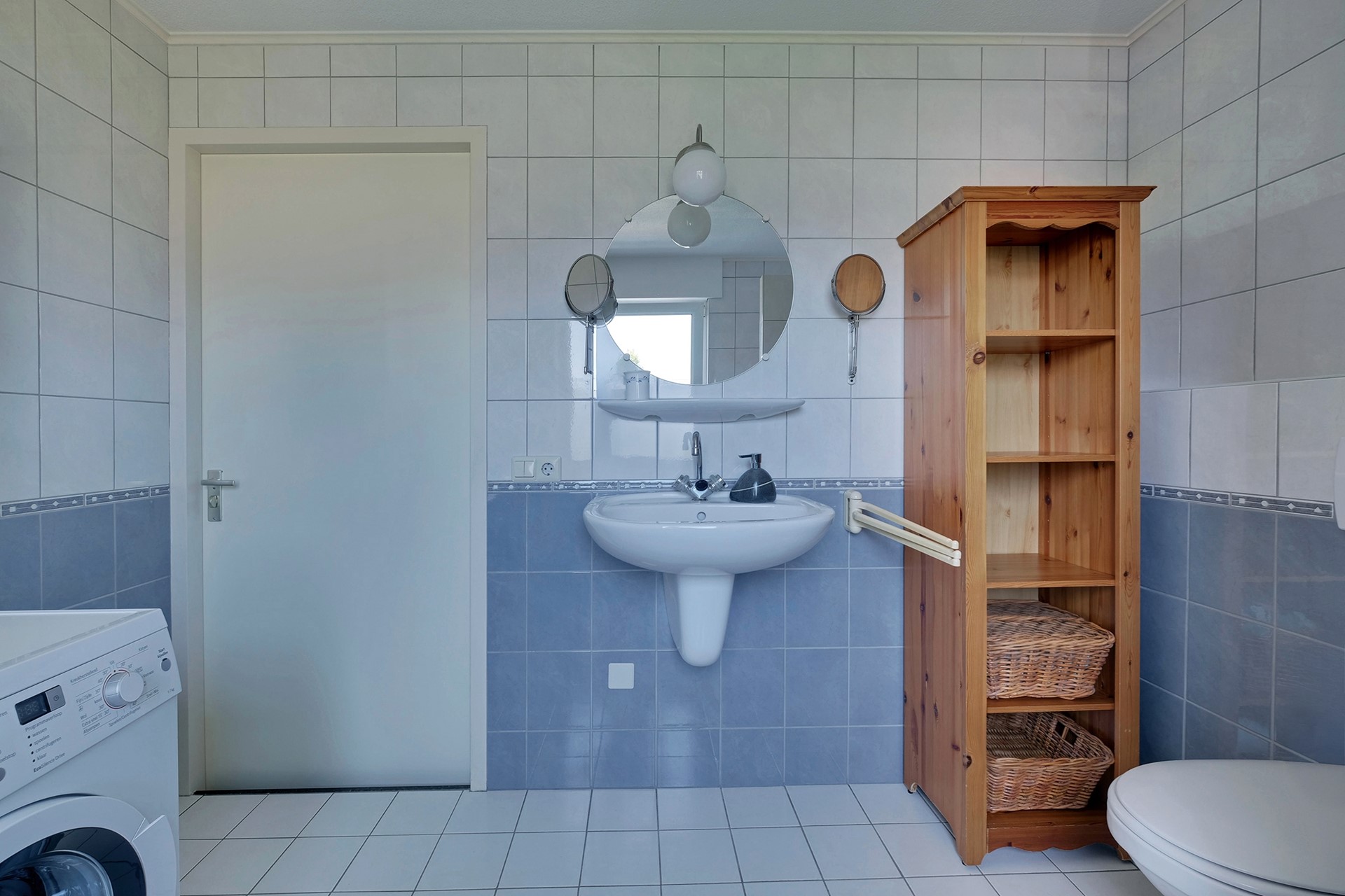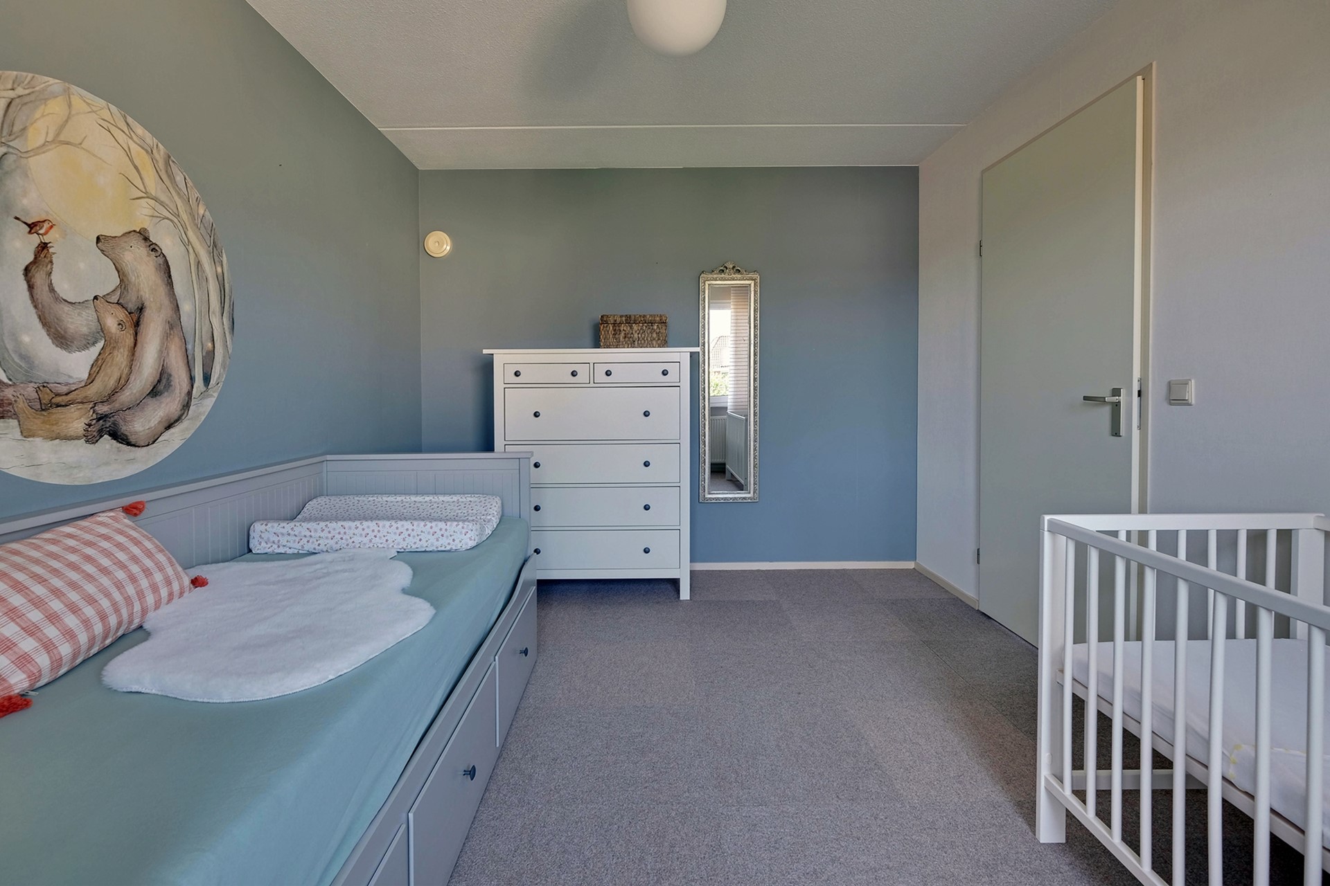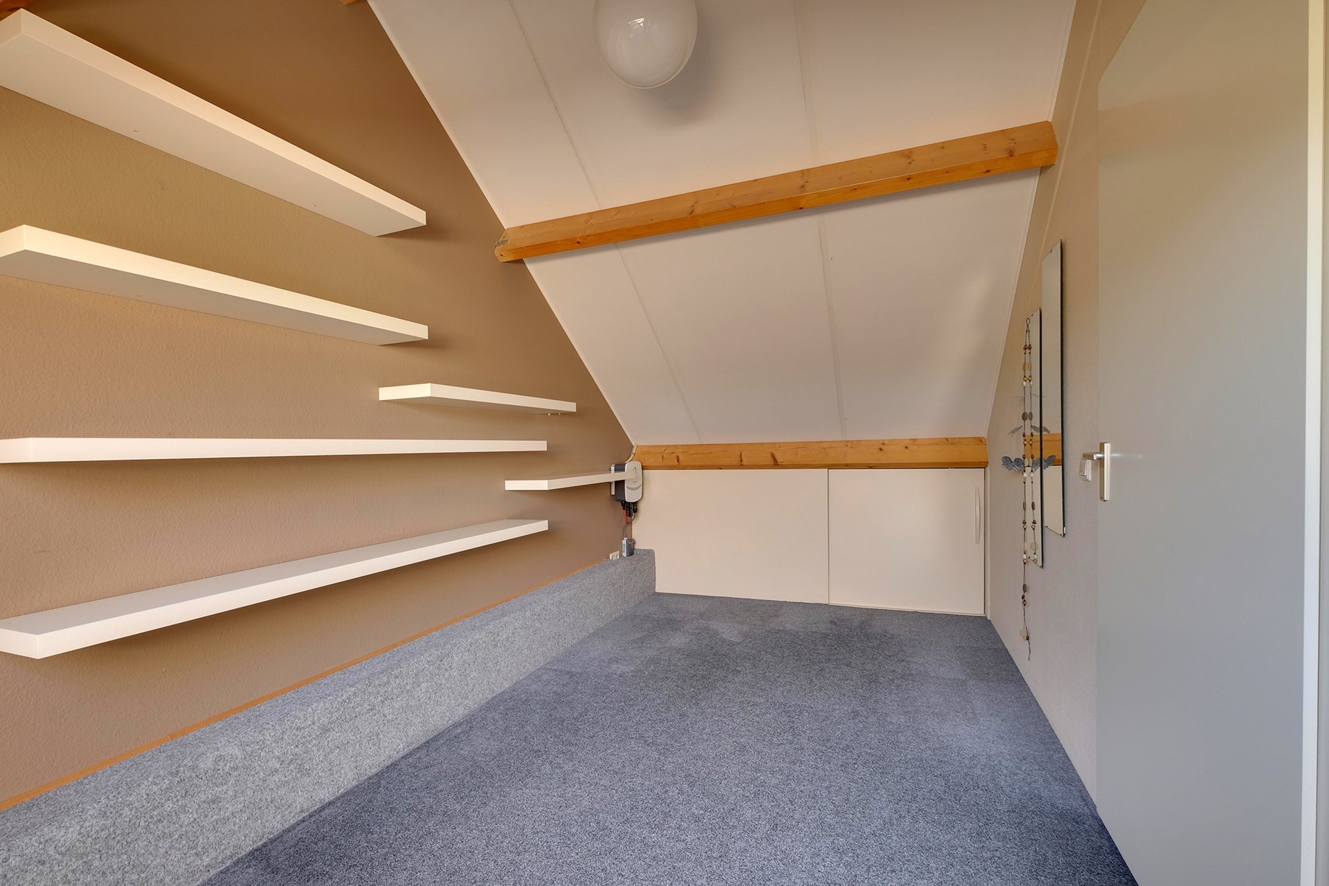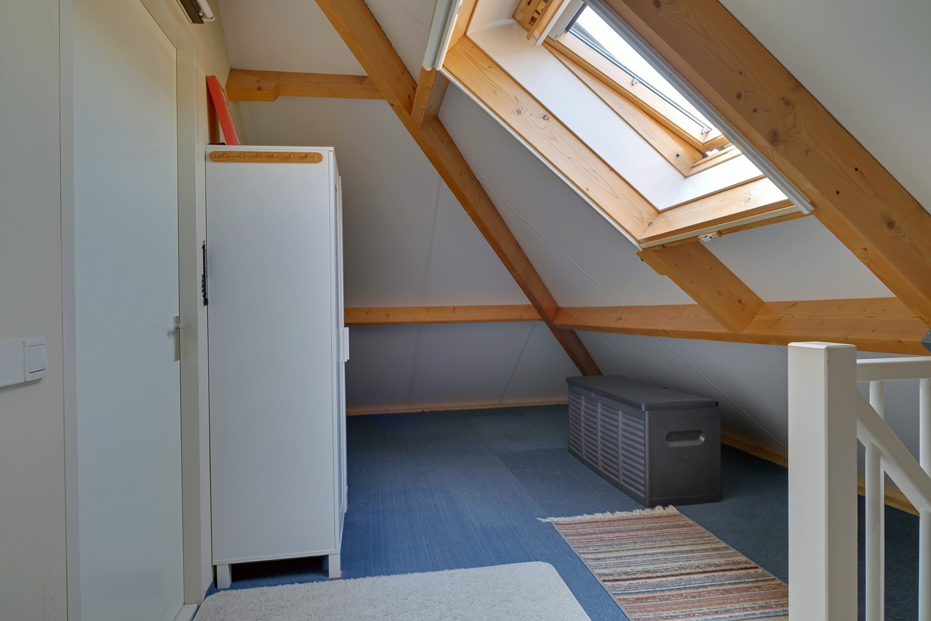 Via de ruime overloop heb je toegang tot twee (voormalig 3) royale slaapkamers, voorzien van rolluiken, waarvan één slaapkamer grenst aan het balkon, werkkamer c.q. derde slaapkamer op de garage, ruime badkamer met inloopdouche, wastafelmeubel en wasmachineaansluitingen.