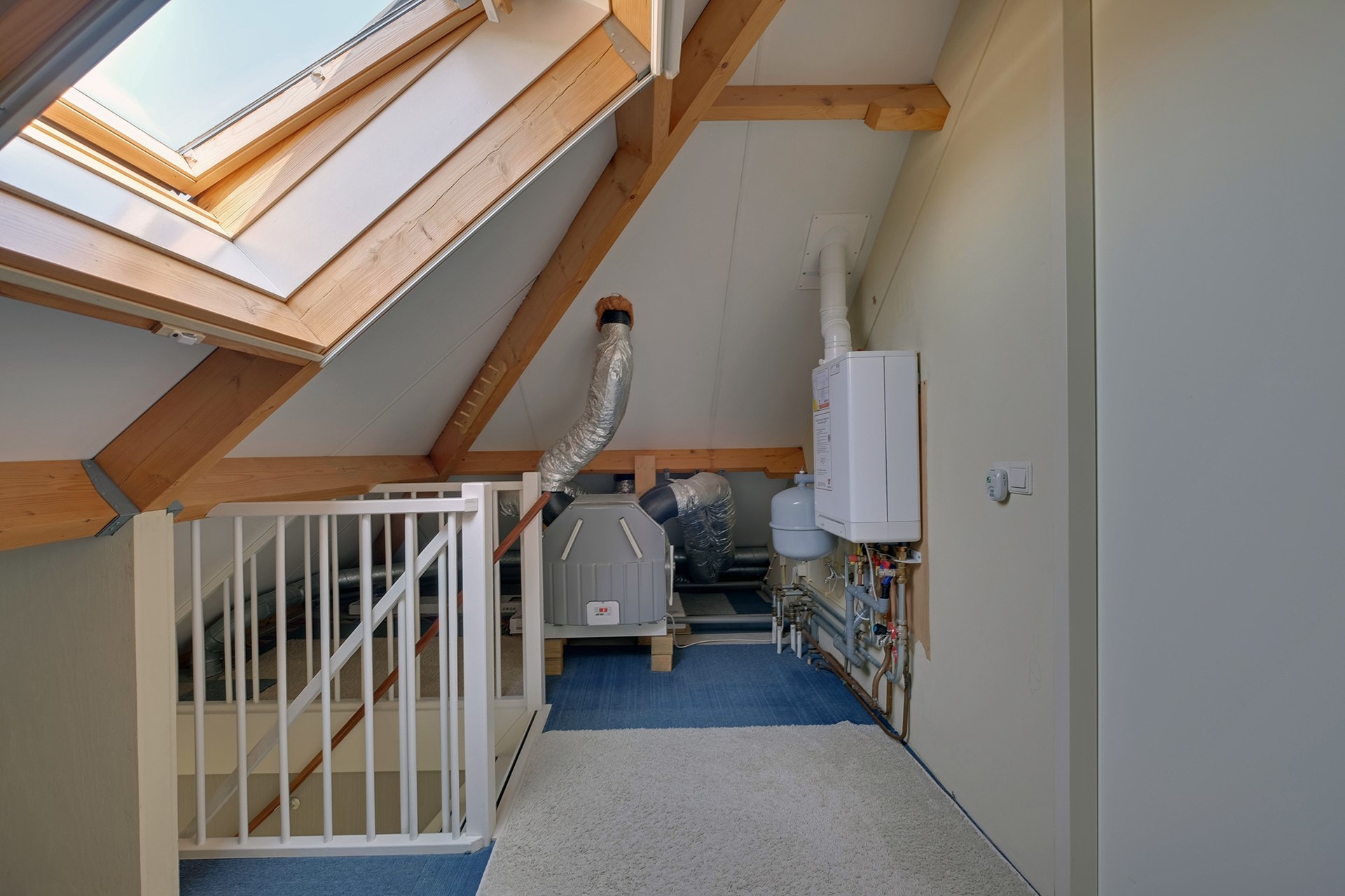 Overloop met CV-opstelling en bergruimte, vierde slaapkamer.