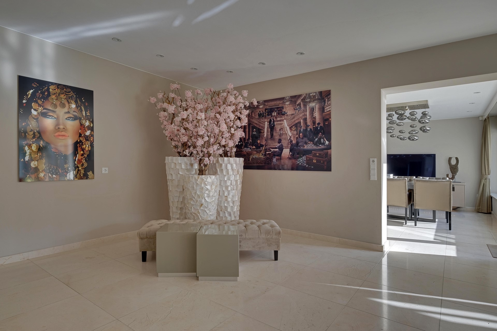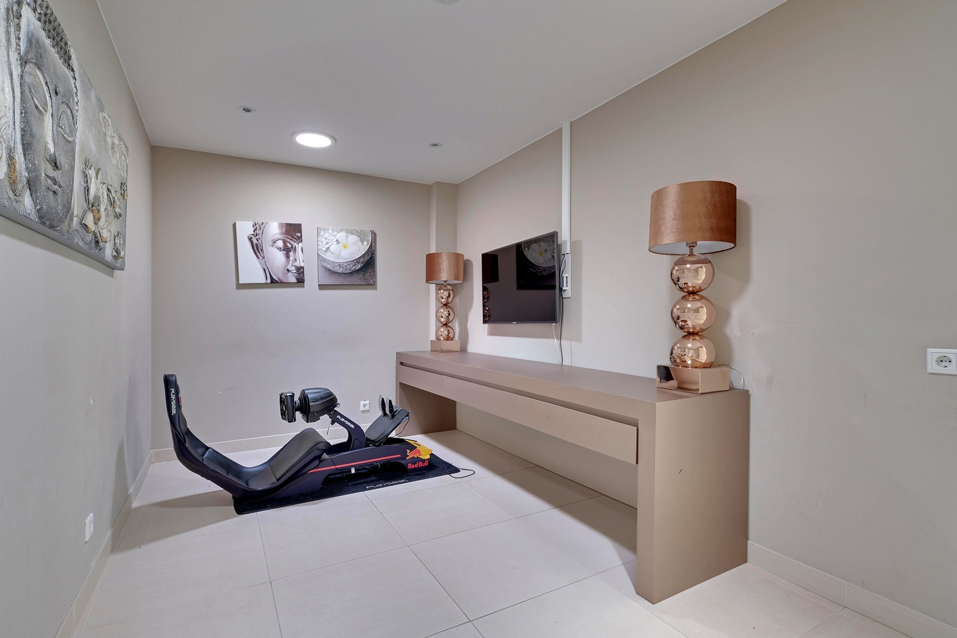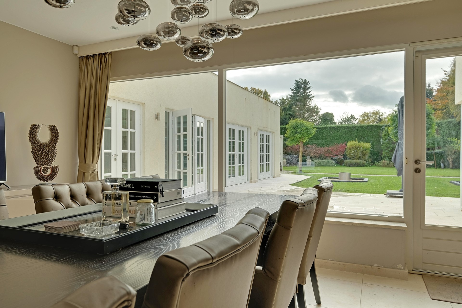 Middels de living lopen we door naar de prachtige leefkeuken en groeten we onze kok. Gemak dient de mens, dus uiteraard is de keuken uitgerust met een zeer uitgebreid scala aan inbouwapparatuur en loopt de keuken geruisloos door in de bijkeuken. De tweede living en een gameroom zijn prachtig grenzend aan het binnenzwembad gelegen. Voordat we een plons nemen komen we eerst aan bij de wasruimte en de extra (speel)kamer c.q. kantoor met eigen douche, toilet en wastafelmeubel.