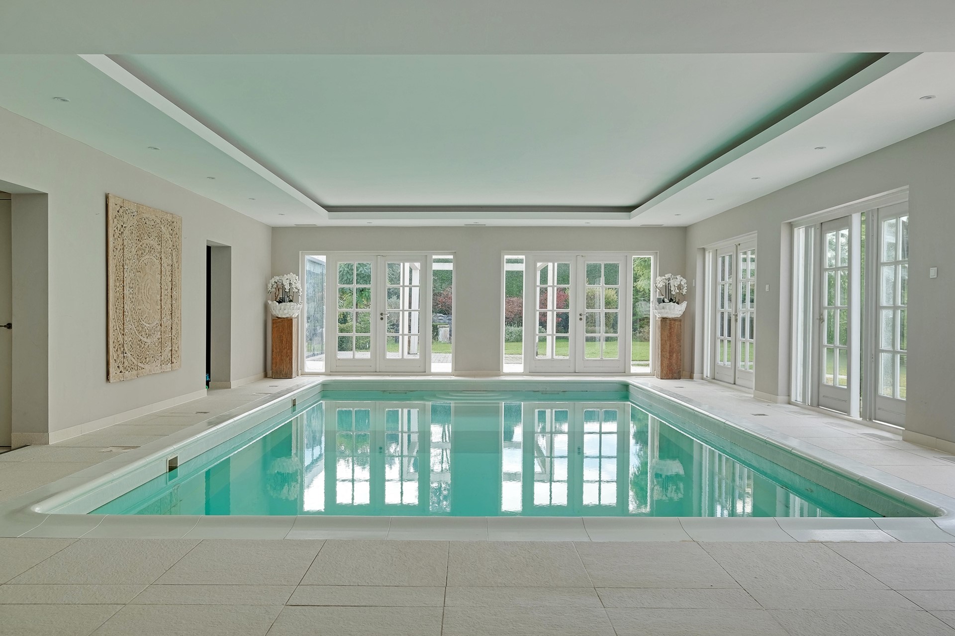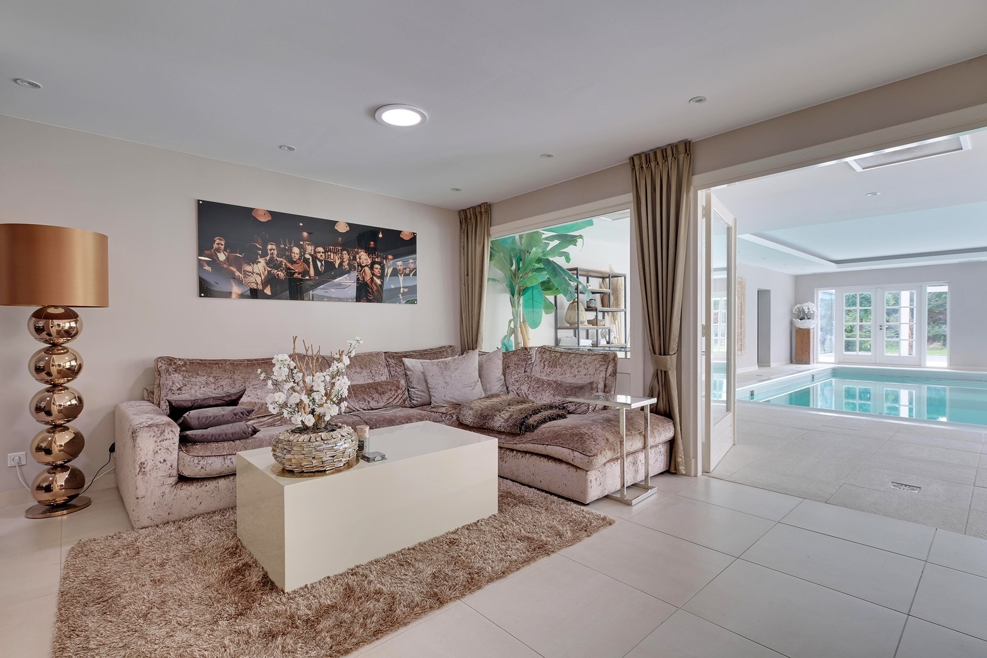 Eindelijk zijn we dan bij het plekje wat deze villa (mede) zo uniek maakt. Je eigen (binnen) zwembad met diverse dubbele opslaande deuren, je eigen sauna en doucheruimte en een ruimte om de jacuzzi te plaatsen. Heerlijk ’s ochtends wakker worden en baantjes zwemmen voordat de drukte van de dag begint of heerlijk relaxen in de sauna na een dag hard werken. Dit is toch ultiem genieten!!