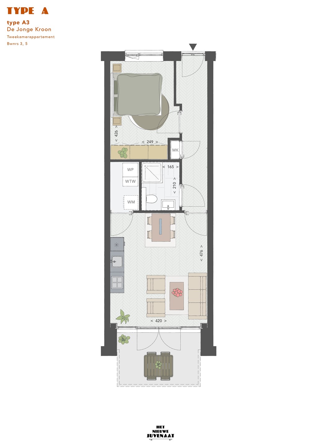 Bouwnummer 5 - (A3) begane grond met terras - 48 m² - €282.500,- v.o.n.
