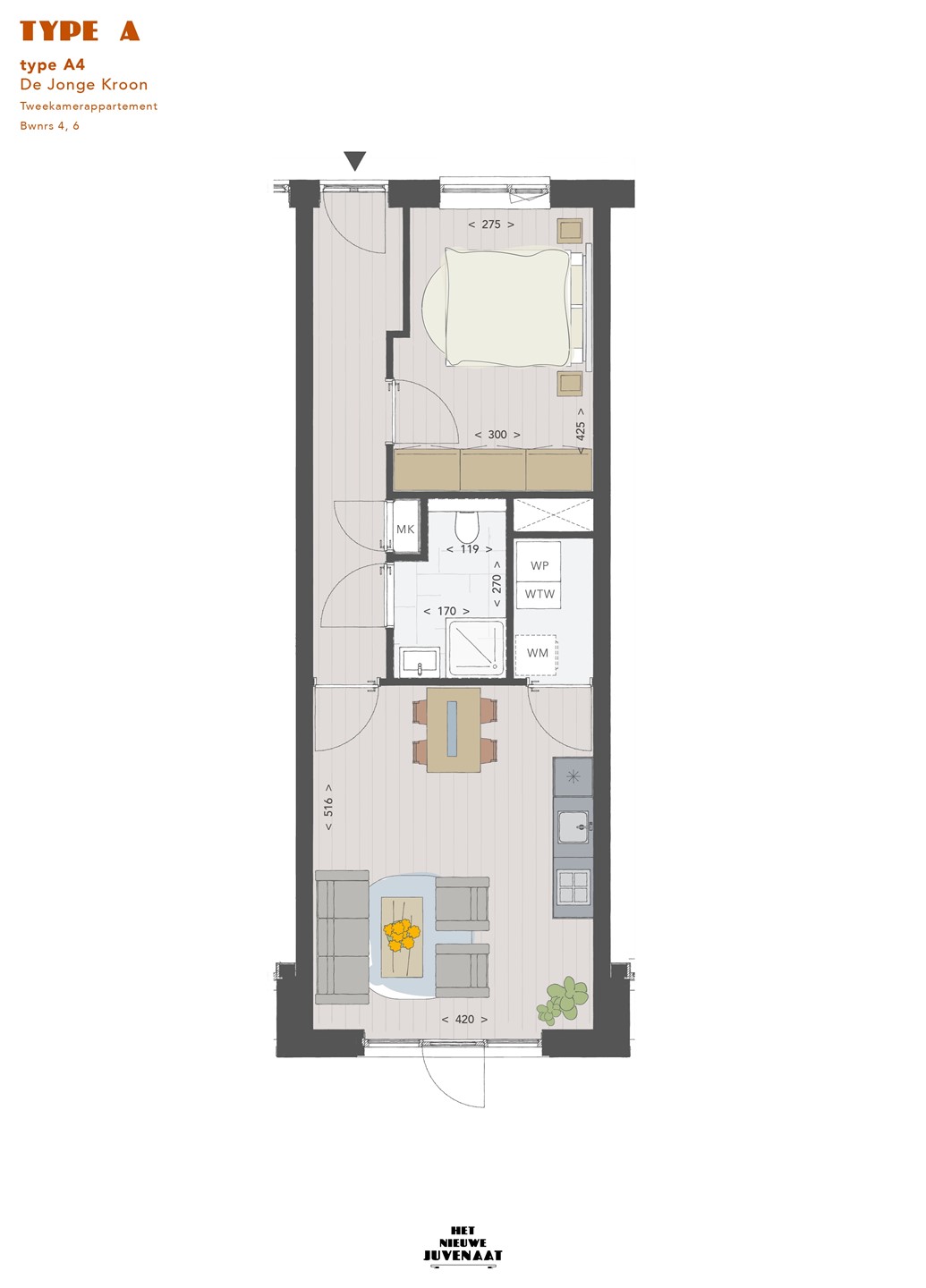 Voor jong en oud. Of je nu een starter bent, een eenpersoonshuishouden hebt of gewoonweg voldoende hebt aan een compact maar zeer compleet appartement, de jonge kroon is de perfecte plek om je wooncarrière te starten of verder vorm te geven.