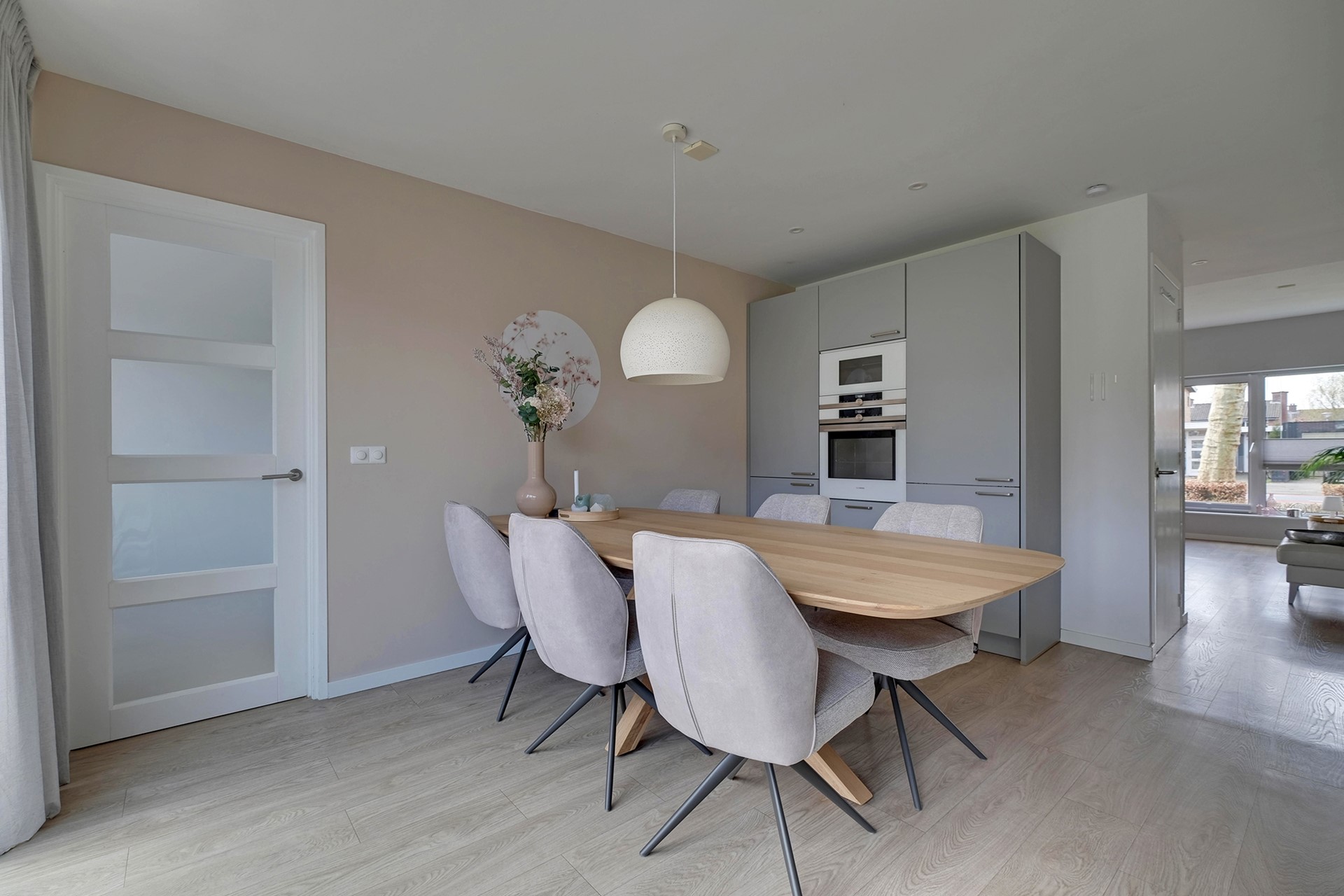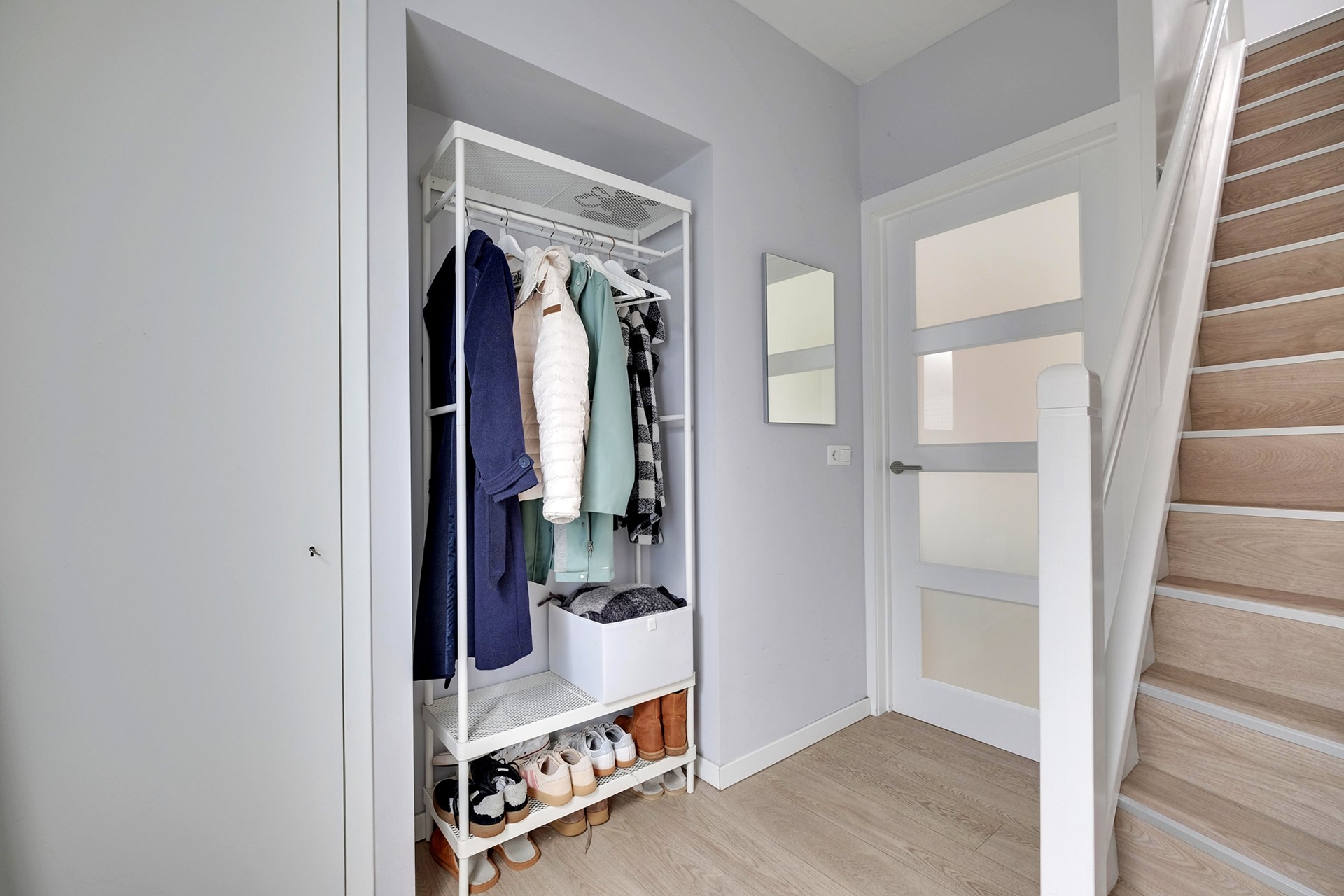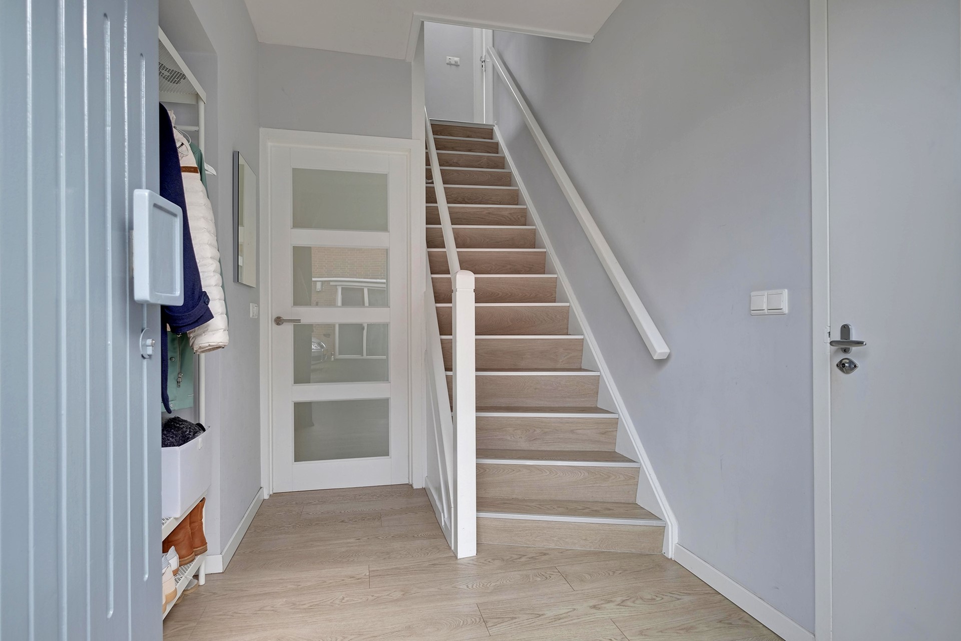 Entree, ruime hal met meterkast, moderne toiletruimte met hangend toilet en wastafelmeubel. Vanuit de hal bereik je de lichte en ruime woonkamer waar de grote raampartijen zorgen voor veel natuurlijke lichtinval. De begane grond is voorzien van een mooie PVC-vloer met vloerverwarming en de woonkamer heeft de beschikking over een airco. Moderne open keuken met diverse inbouwapparatuur, een Quooker-kraan en voldoende opbergruimte met daarnaast een provisiekast. Via de schuifpui heb je direct toegang tot de achtertuin die gelegen is op het oosten. Het unieke aan deze woning is dat het een slaap- c.q. tuinkamer op de begane grond heeft. Hiermee zijn er voldoende mogelijkheden voor levensloopbestendig wonen. De bijkeuken, berging en garage maken de begane grond compleet.