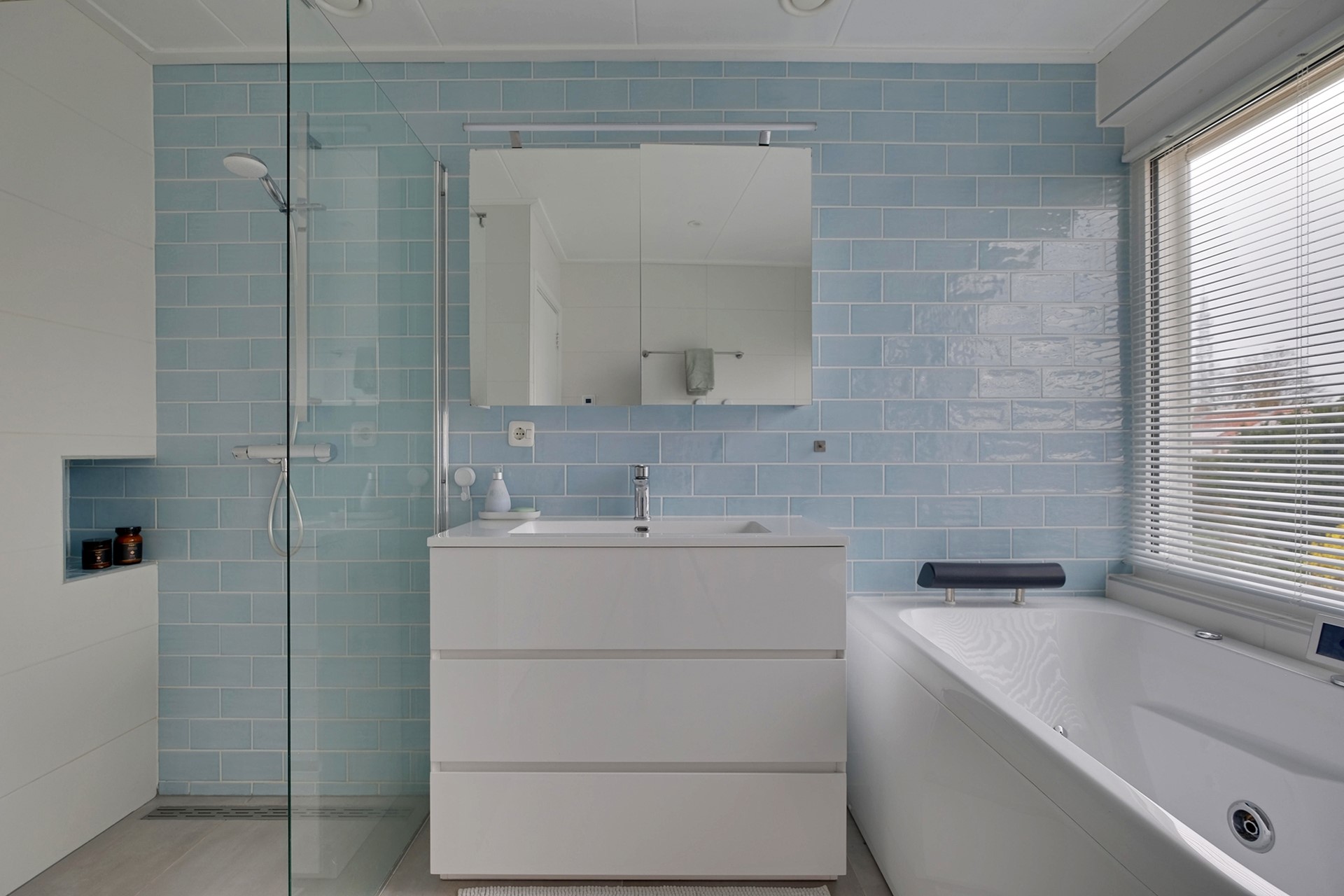 De overloop met airco biedt toegang tot drie ruime slaapkamers. De moderne badkamer (2019) is voorzien van een whirlpool ligbad, inloopdouche, wastafelmeubel en vloerverwarming. Daarnaast is er een separate toiletruimte aanwezig met hangend toilet en fontein. De eerste verdieping wordt verwarmd en gekoeld met een airco en elektrische verwarmingspanelen.