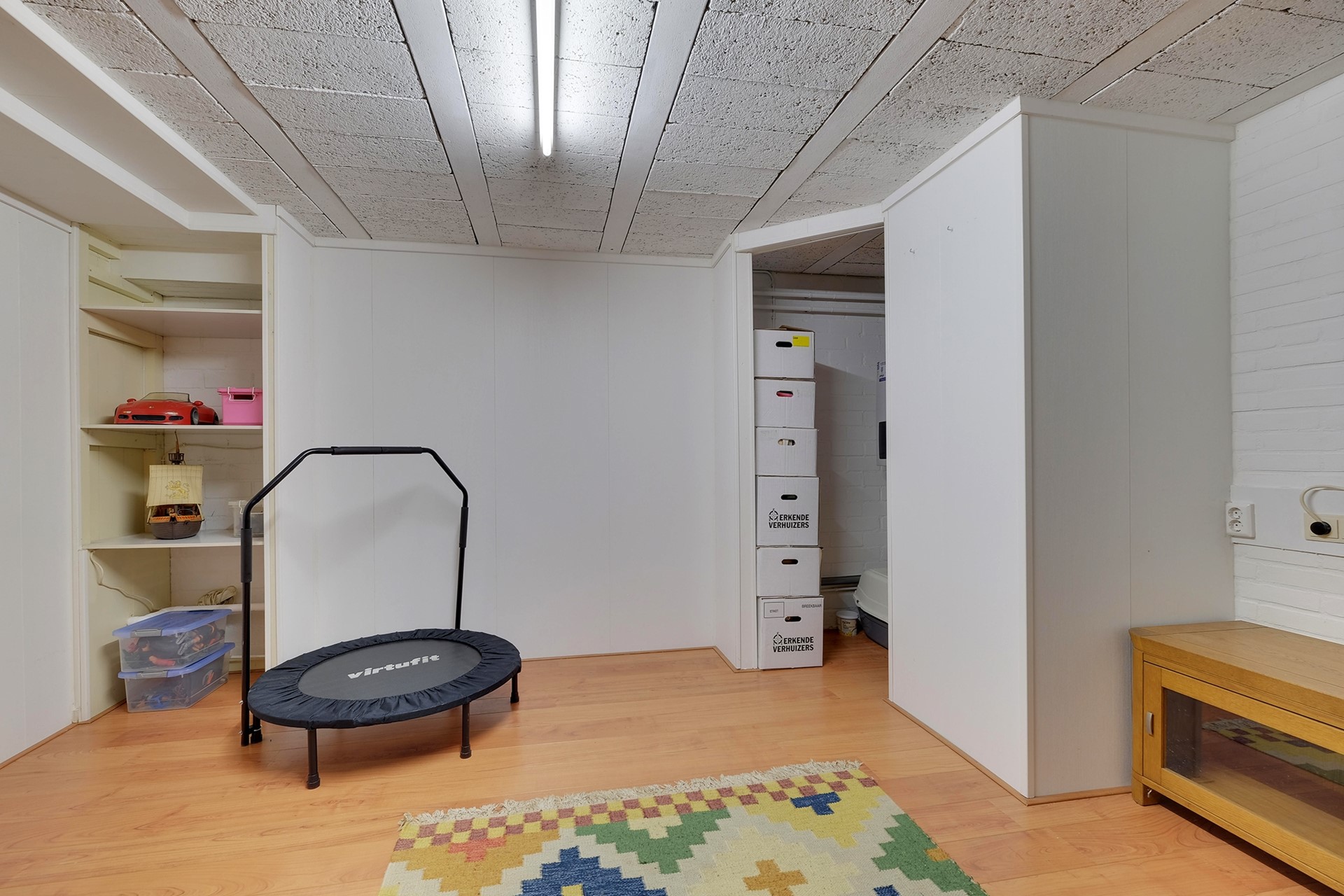 Via de trap bereik je het ruime souterrain. Bevinden zich de cv-opstelling en een infrarood sauna. Dankzij de royale afmetingen is dit een praktische ruimte met volop mogelijkheden.